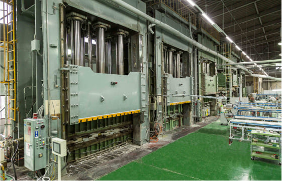 合計36基のプレス機をはじめ、CNCルーター、ウォータージェット等、様々な加工機を取り揃えています。ユニットバス主要パーツの製造から加工までを自社内で完結することで、スピード感のある製造力を保持しています。また、人工大理石製キッチンカウンター天板の製造も行っており、国内シェアの約6割を担っております。経験により培われた独自のノウハウと充実した設備により、大型ホテルや大規模な都市開発の集合住宅案件にも安定した品質で供給できる体制が整っています。